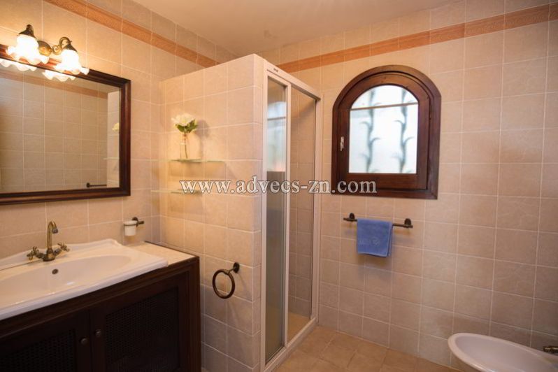 Нижний этаж - гостевая спальня-сьют с душевой и гардеробной комнатами, салон с выходом в сад к бассейну (кондиционер); прачечная (стиральная и сушильная машины).