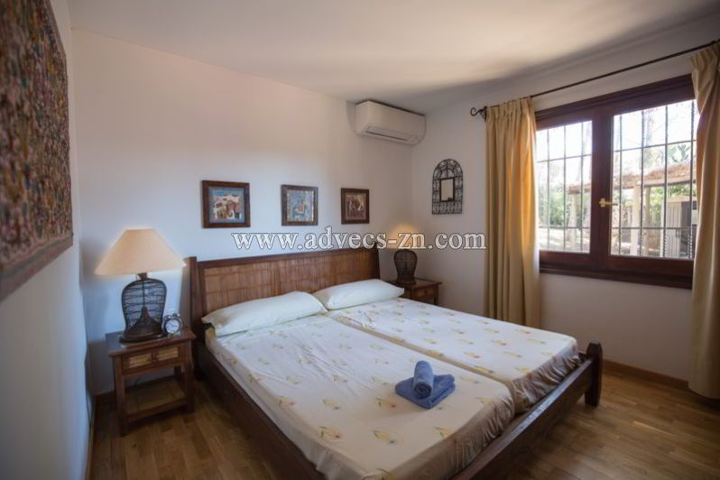 2 (центральный вход) этаж – прихожая, просторный салон (ТВ со спутниковой антенной - русские каналы, кондиционер) с камином и выходом на крытую террасу и в беседку к бассейну, столовая, отдельная оборудованная кухня (посудомоечная машин, кофеварка, СВЧ, тостер, соковыжималка и все необходимое), туалет, двухместная спальня (кондиционер), душевая.